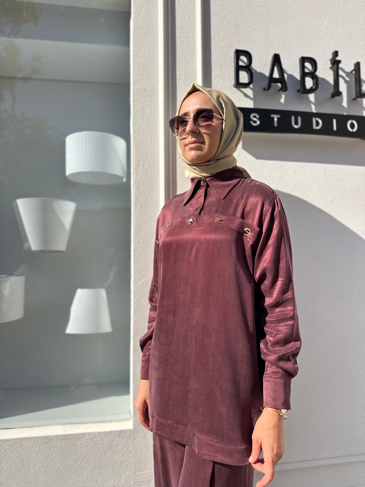 25023004 Düğme Detay Kadın Bluz Bordo (25023004)