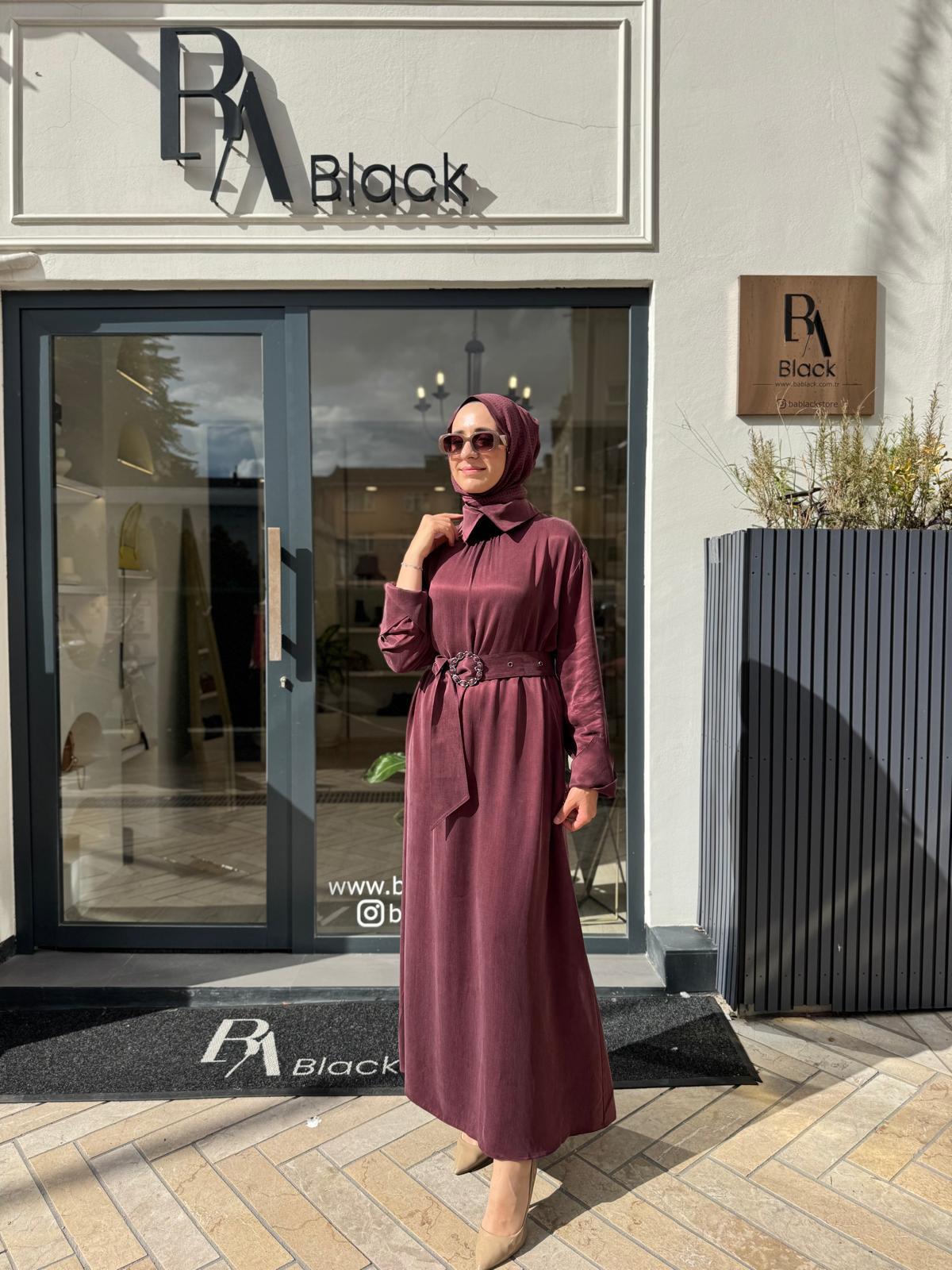 25025001 Kemer Detaylı Kadın Elbise Bordo (25025001)