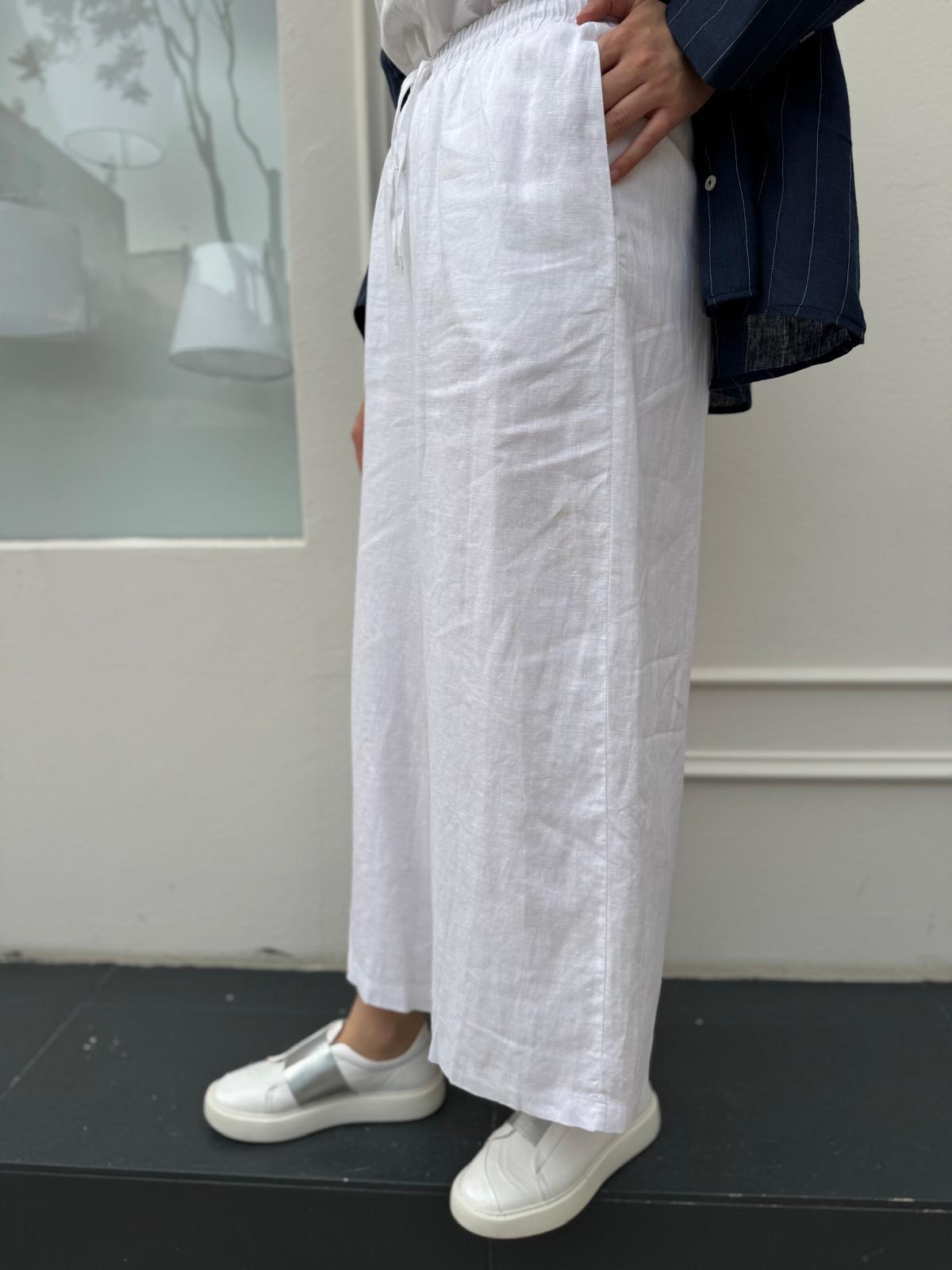 25SS309 Keten Geniş Paça Kadın Pantolon Beyaz