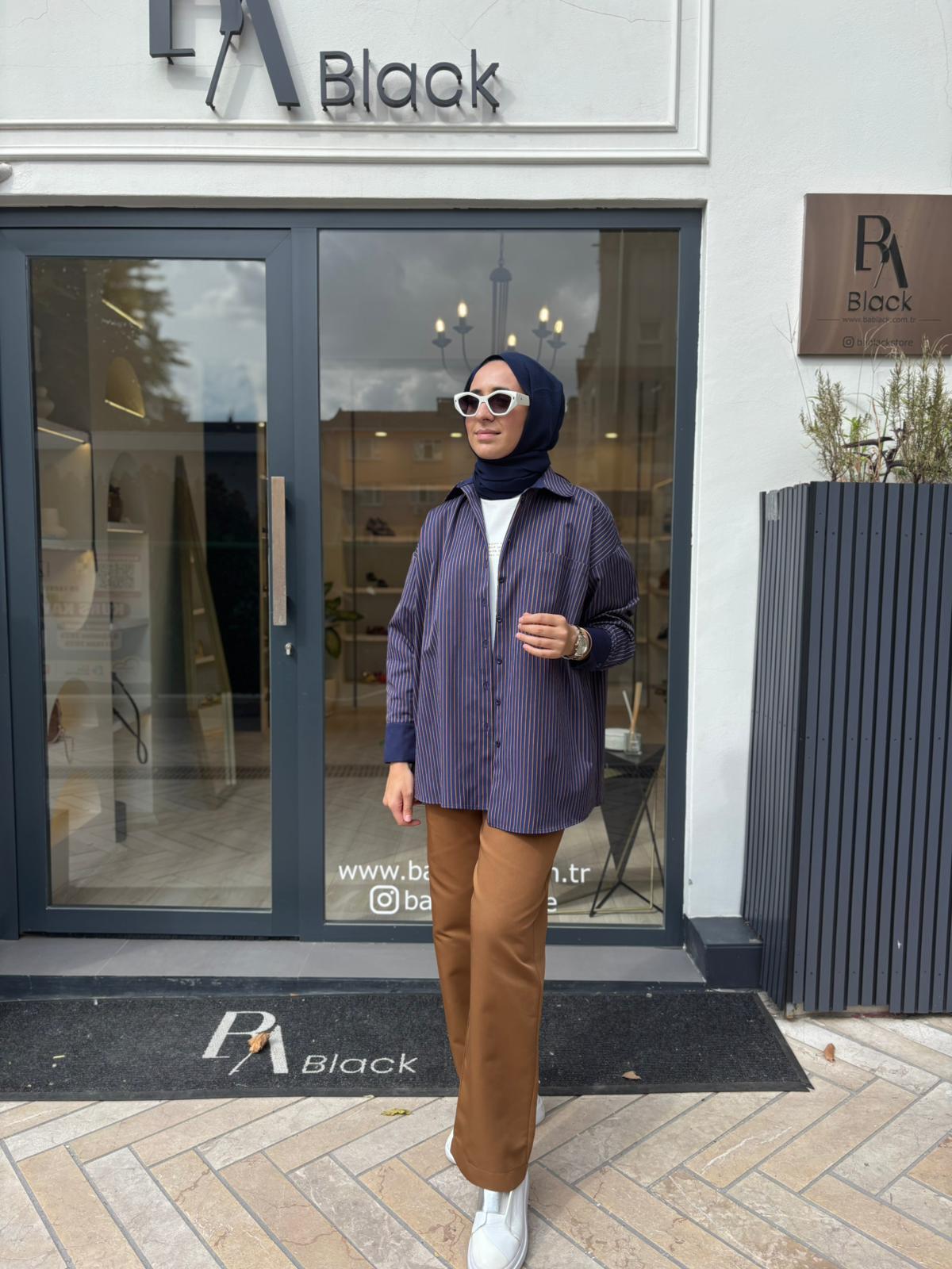 26FW206 Çizgili Kadın Gömlek Mavi