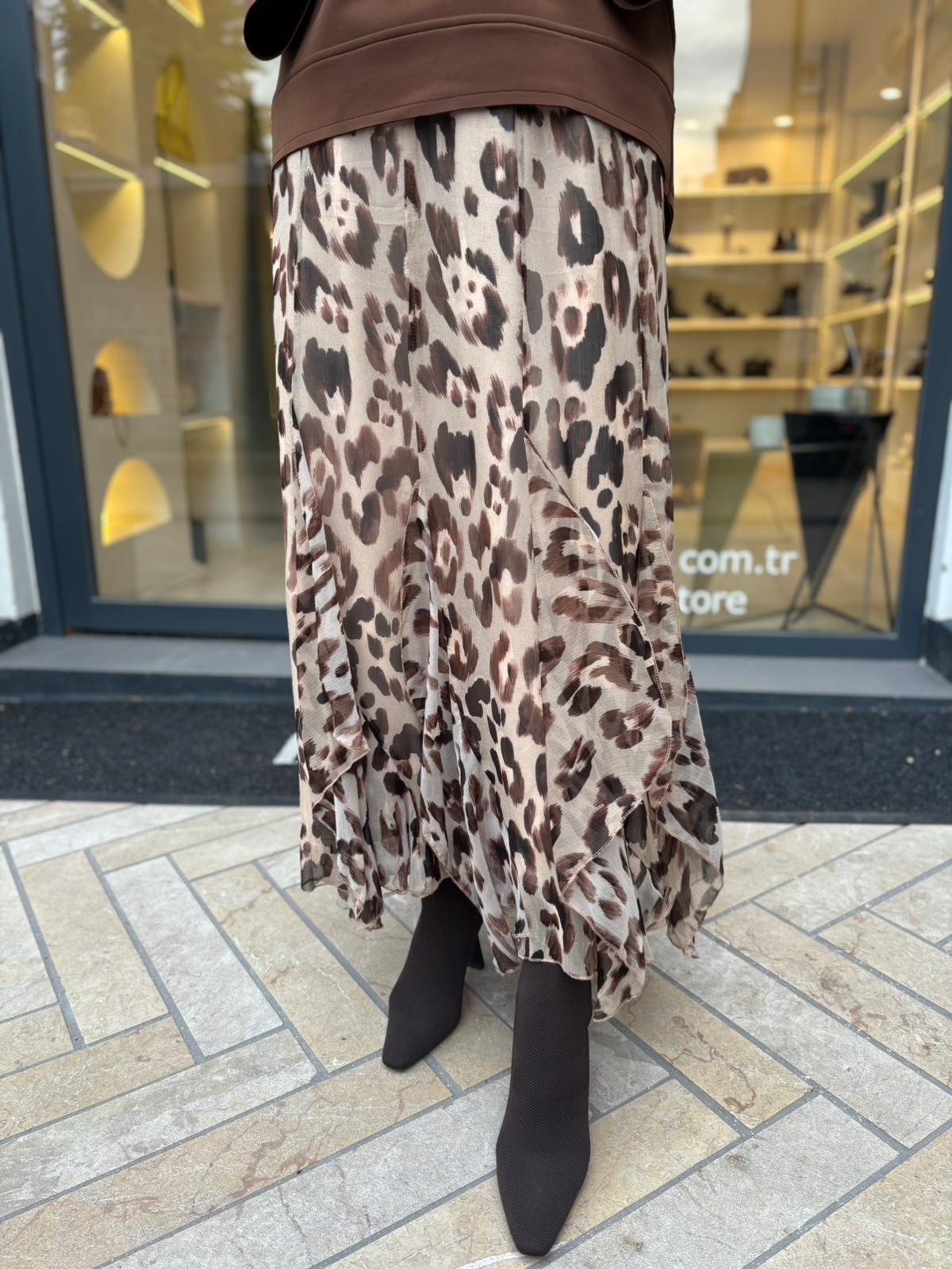 26FWETE0001 Parçalı Bert Kadın Etek Leopar