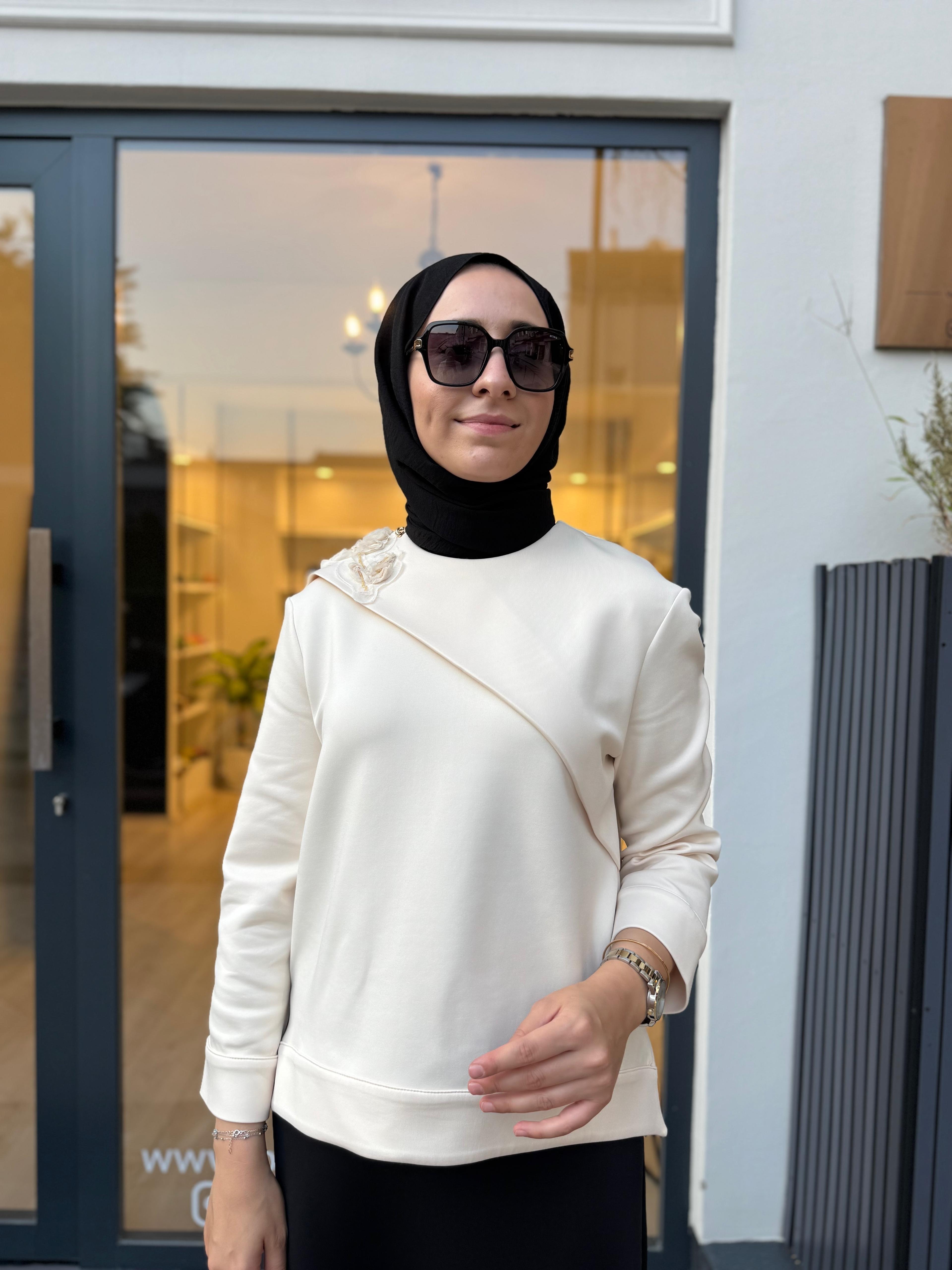 26FWSWE0006 Omzu İşlemeli Valde Kadın Sweat Krem (26FWSWE0006)