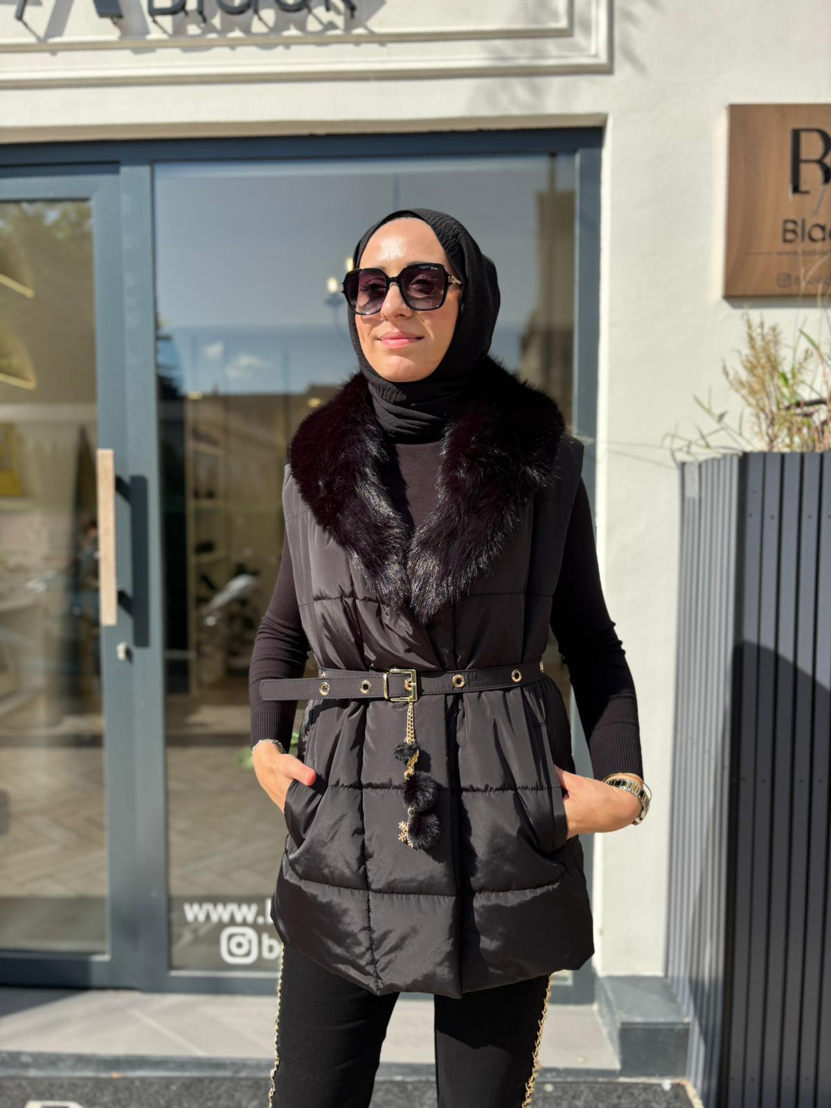 26FWYLK0001 Kürk Yakalı Ruth Kadın Yelek Siyah