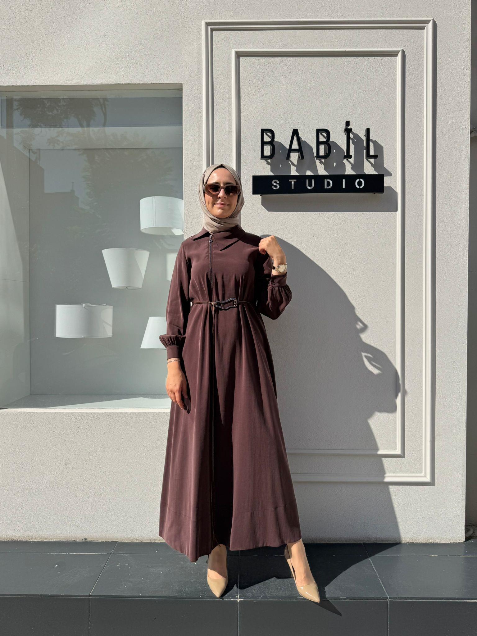 303882 Fermuar Detaylı Kemerli Kadın Kap Acı Kahve (303882)