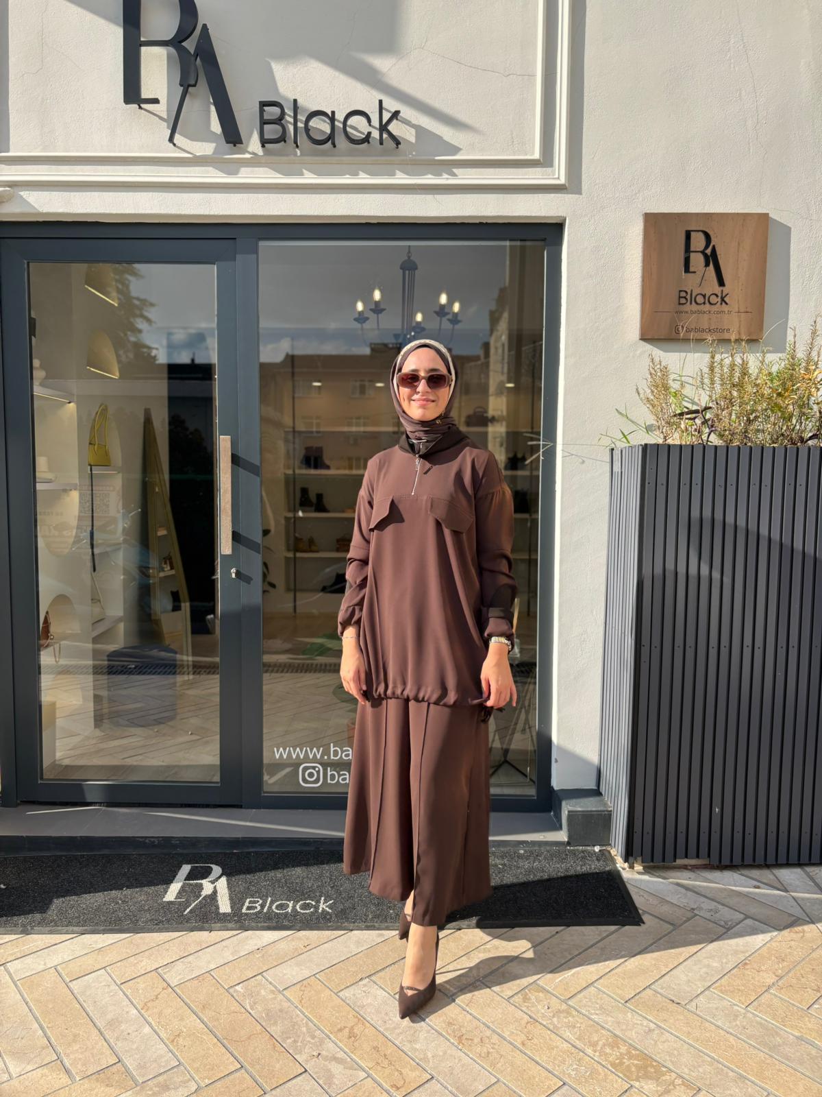 38008 Fermuar Detay Kadın Takım Kahve (38008)
