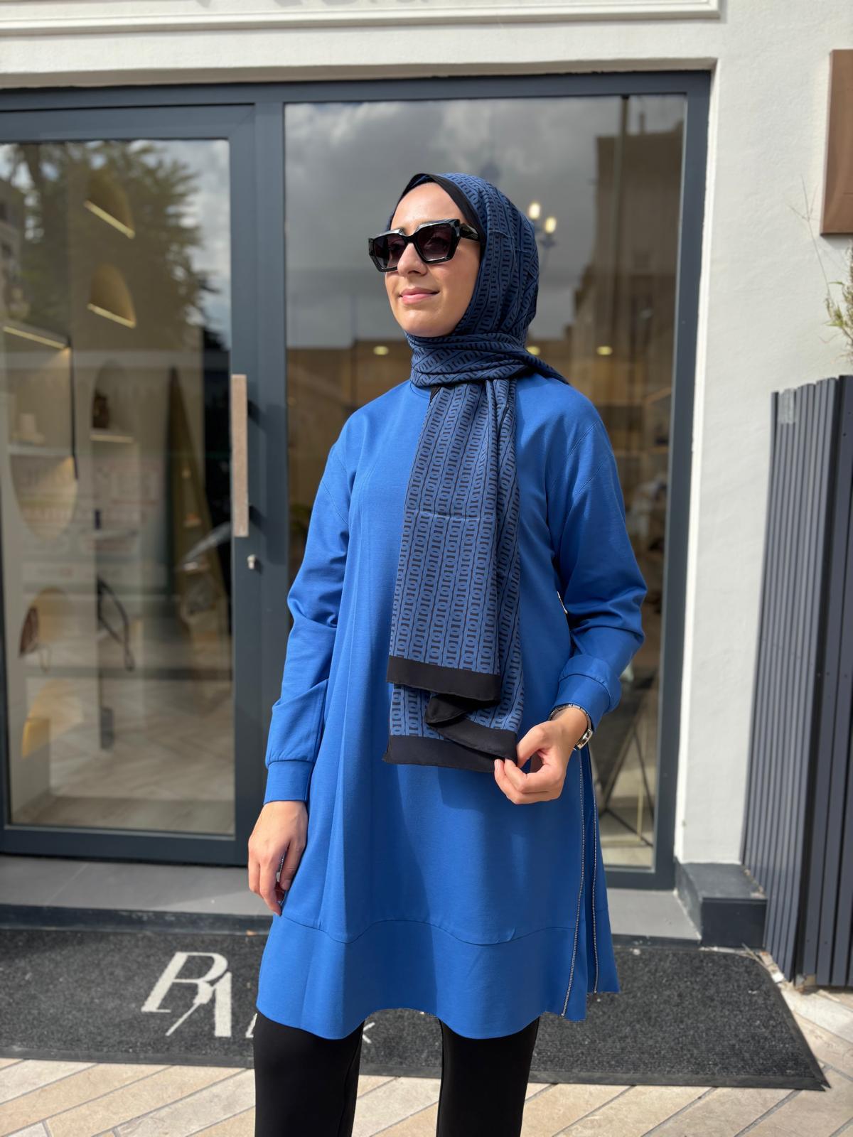 38020 Fermuar Detay Kadın Tunik Saks Mavi