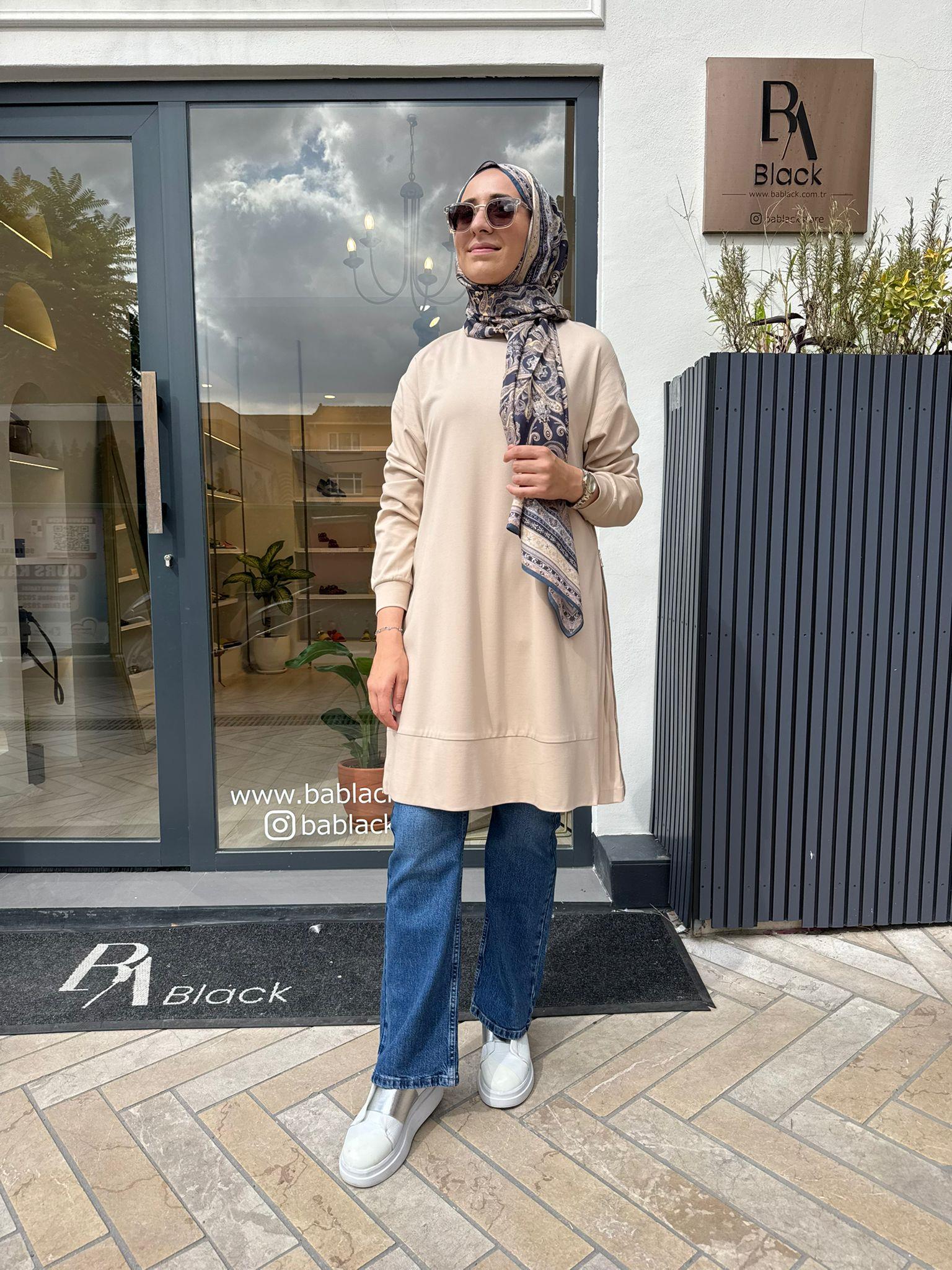 38020 Fermuar Detay Kadın Tunik Taş Rengi (38020)