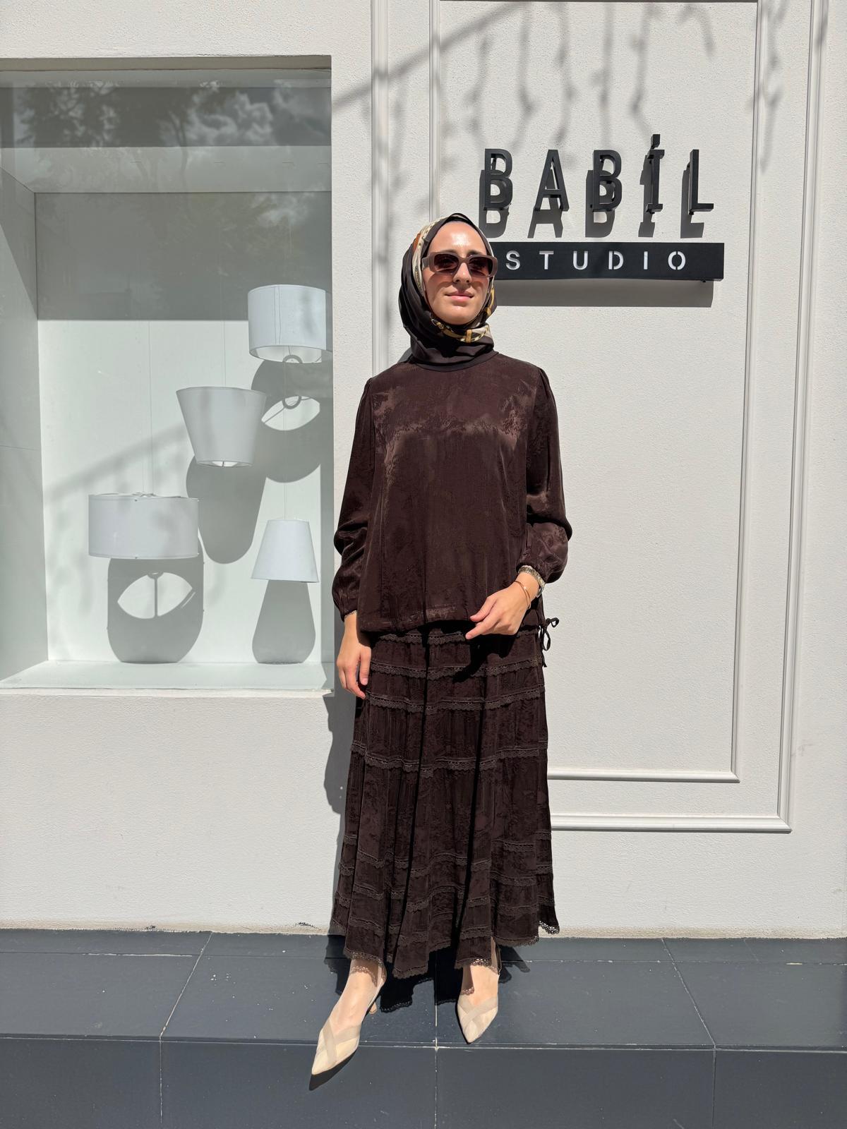 38025 Dantel Detaylı İpek Kadın Takım Kahve (38025)