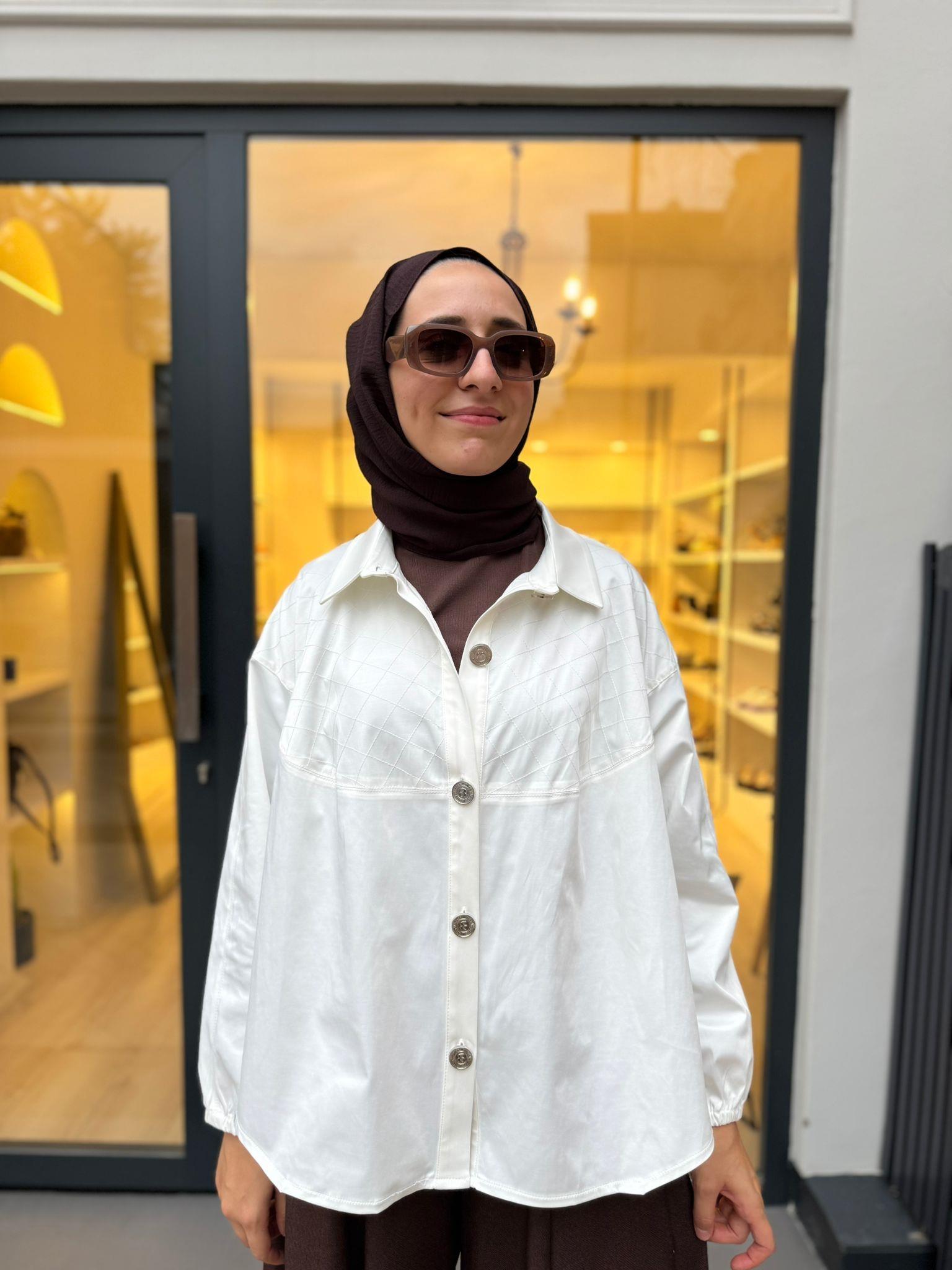 38031 Baklava Dikişli Kadın Gömlek Beyaz