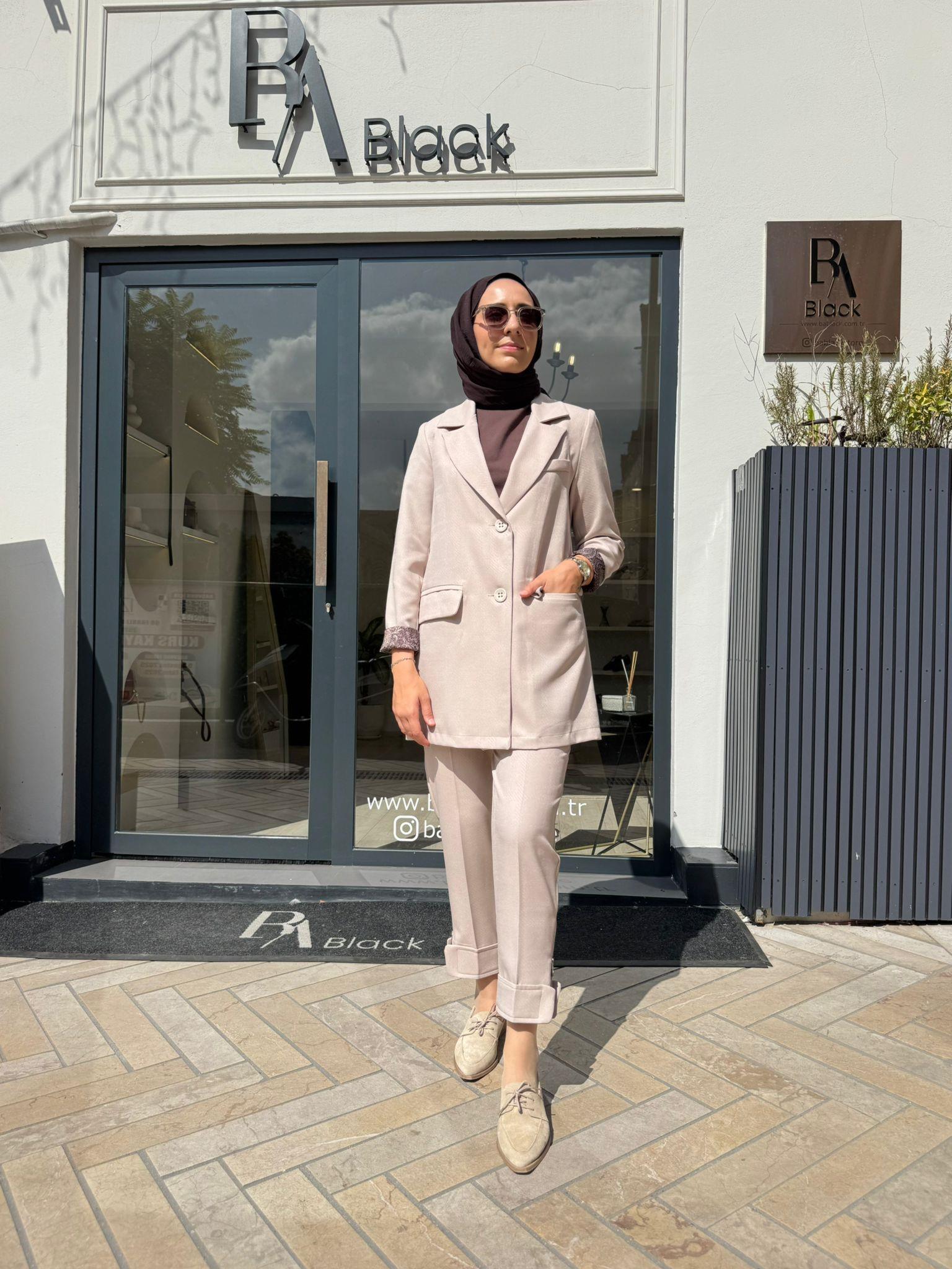38204 Desenli Astar Detay Kadın Takım Taş Rengi (38204)