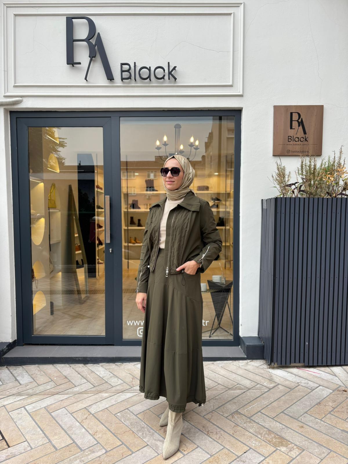 38208 Baklava Dikişli Kadın Takım Haki Yeşil