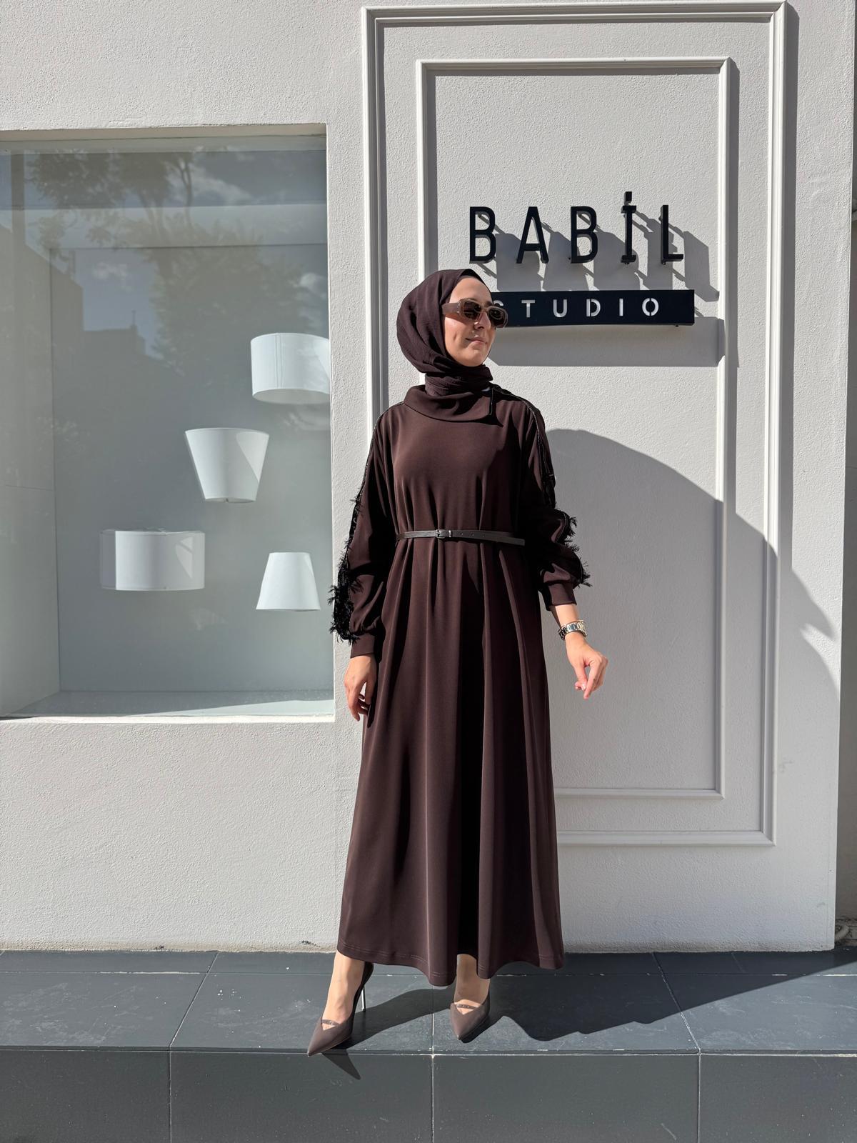 38800 Püskül Detaylı Kadın Elbise Kahve (38800)