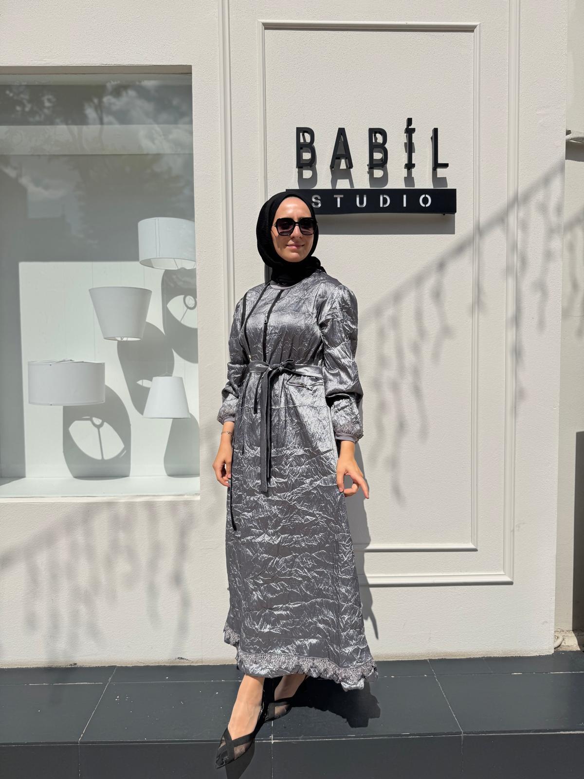 38804 Fermuar Detaylı Kırışık Kadın Elbise Gri (38804)