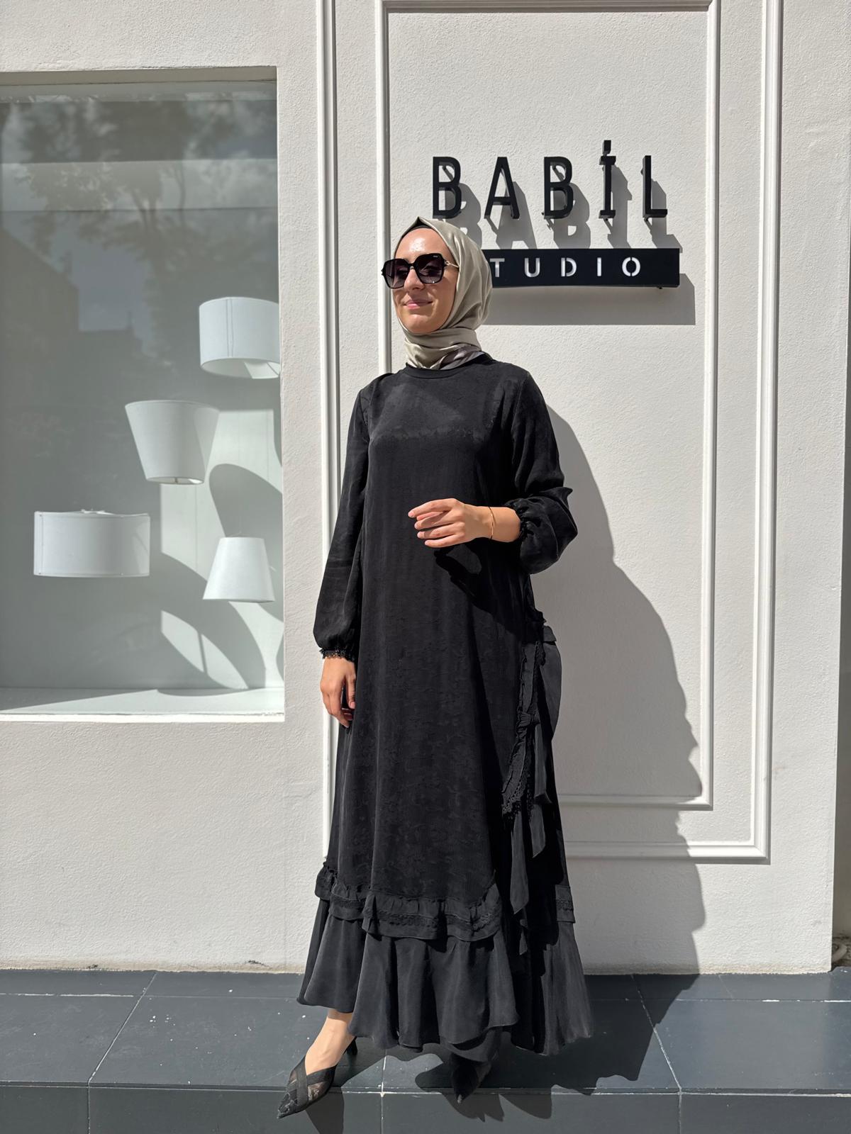 38806 Dantel Detaylı Kadın Elbise Siyah (38806)
