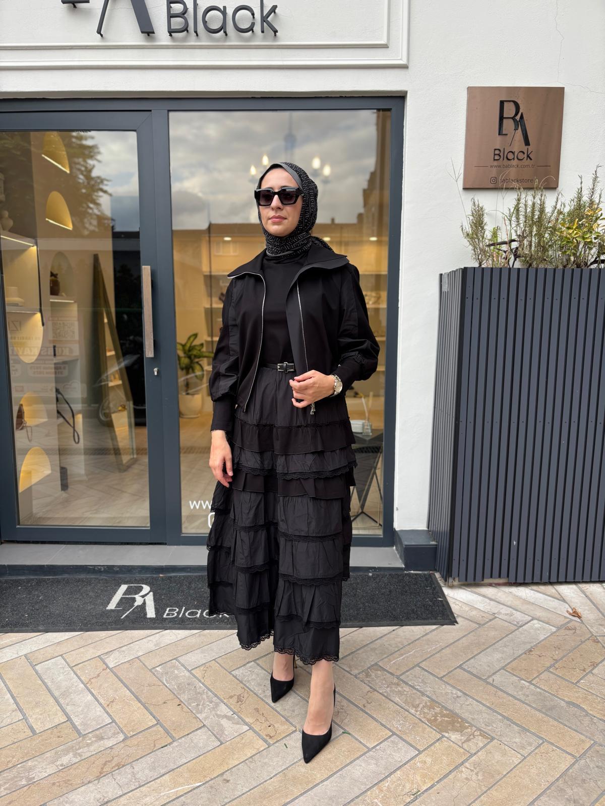 38807 Fırfırlı İkili Elbise Siyah (38807)