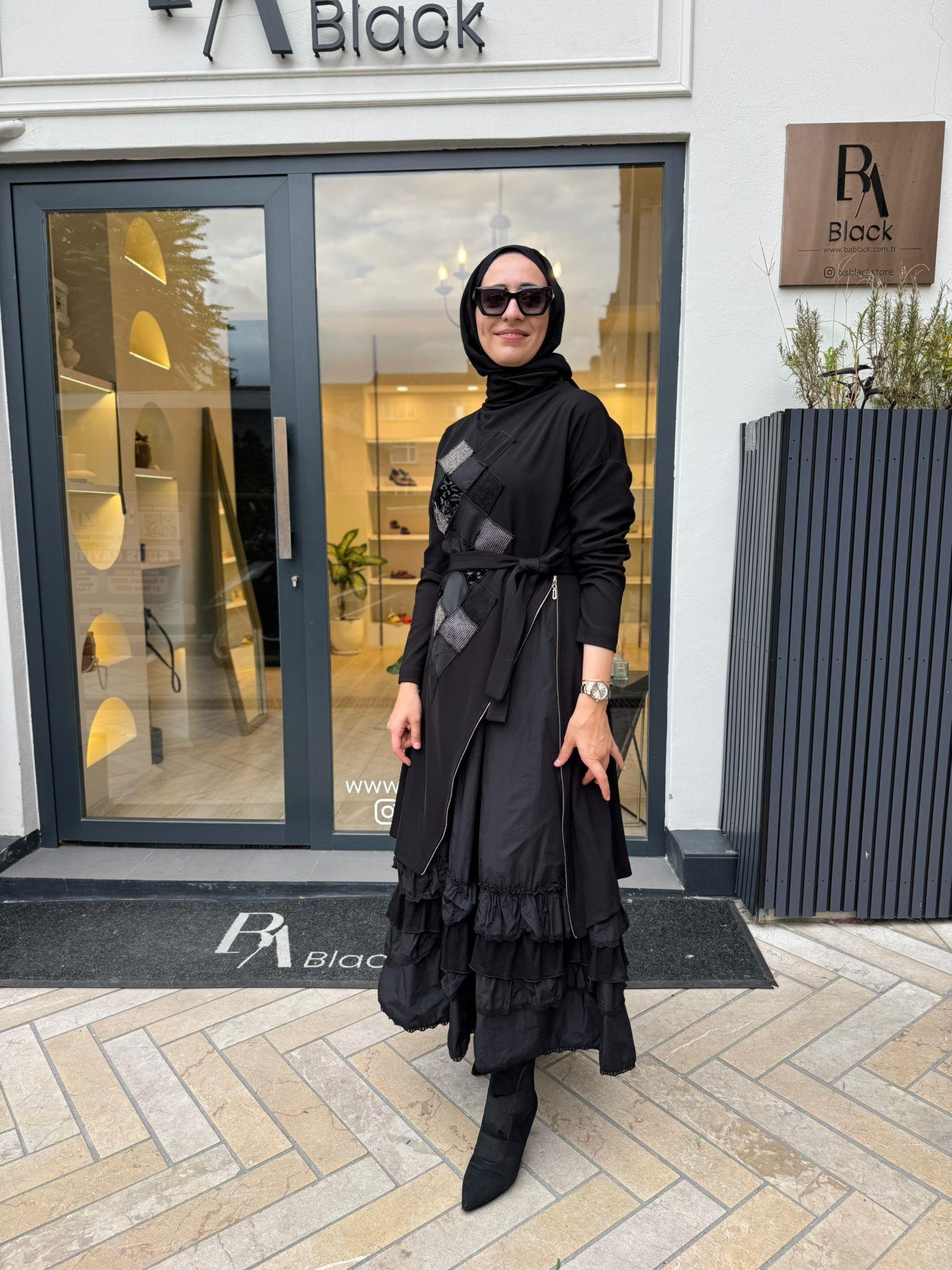 38808 Önü Parça Detay Kadın Elbise Siyah
