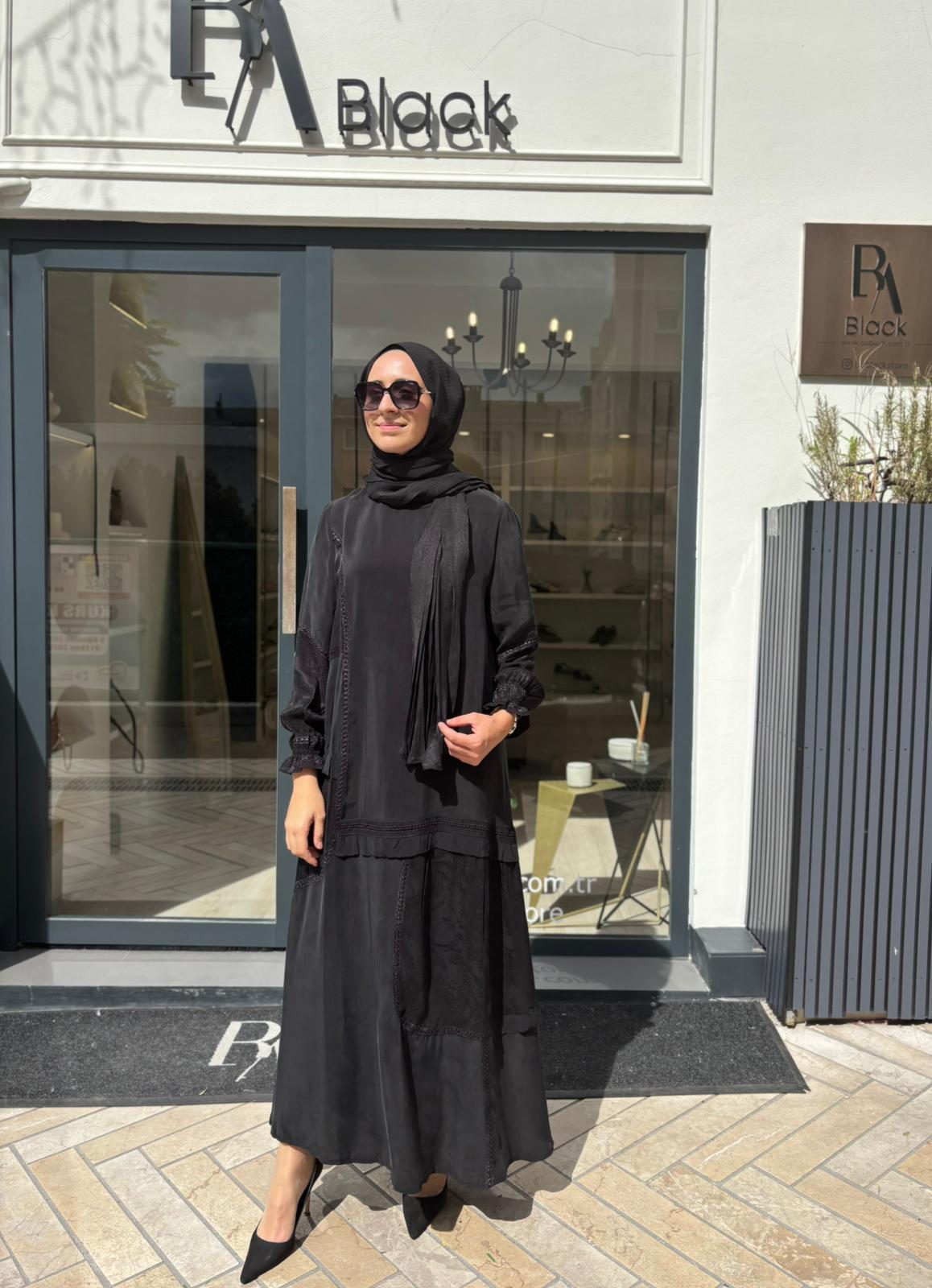 38818 Güpür Detay Kadın Elbise Siyah (38818)