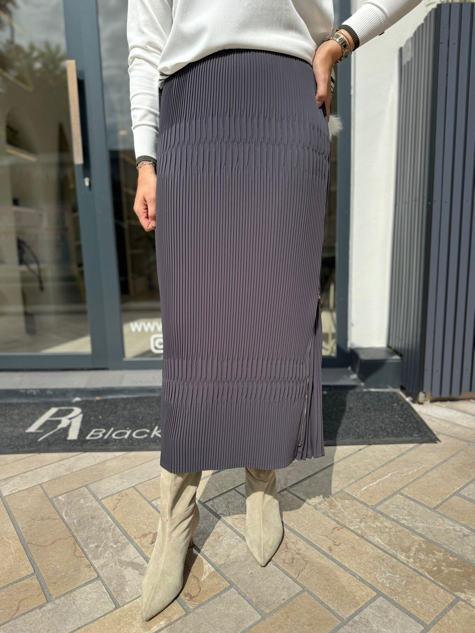 38921 Pilise Fermuar Detay Kadın Etek Antrasit (38921)