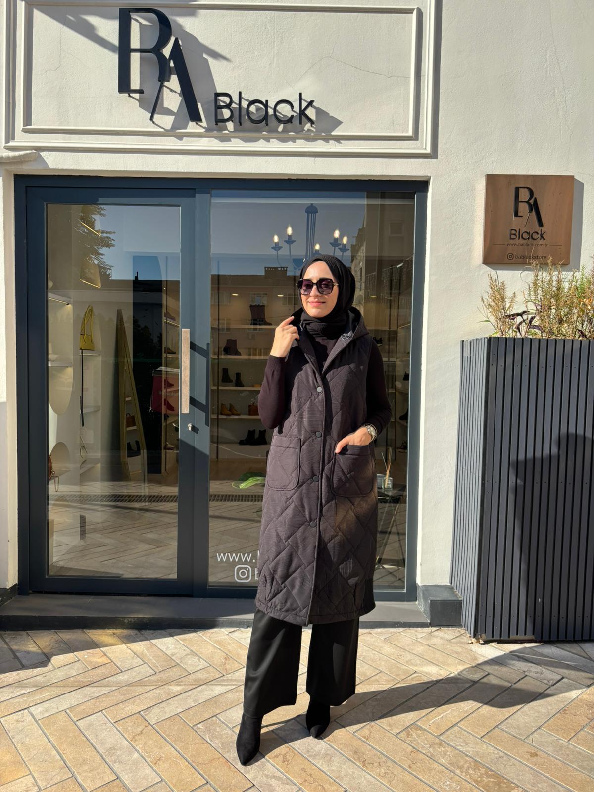505329 Kapüşonlu Kadın Yelek Siyah (505329)
