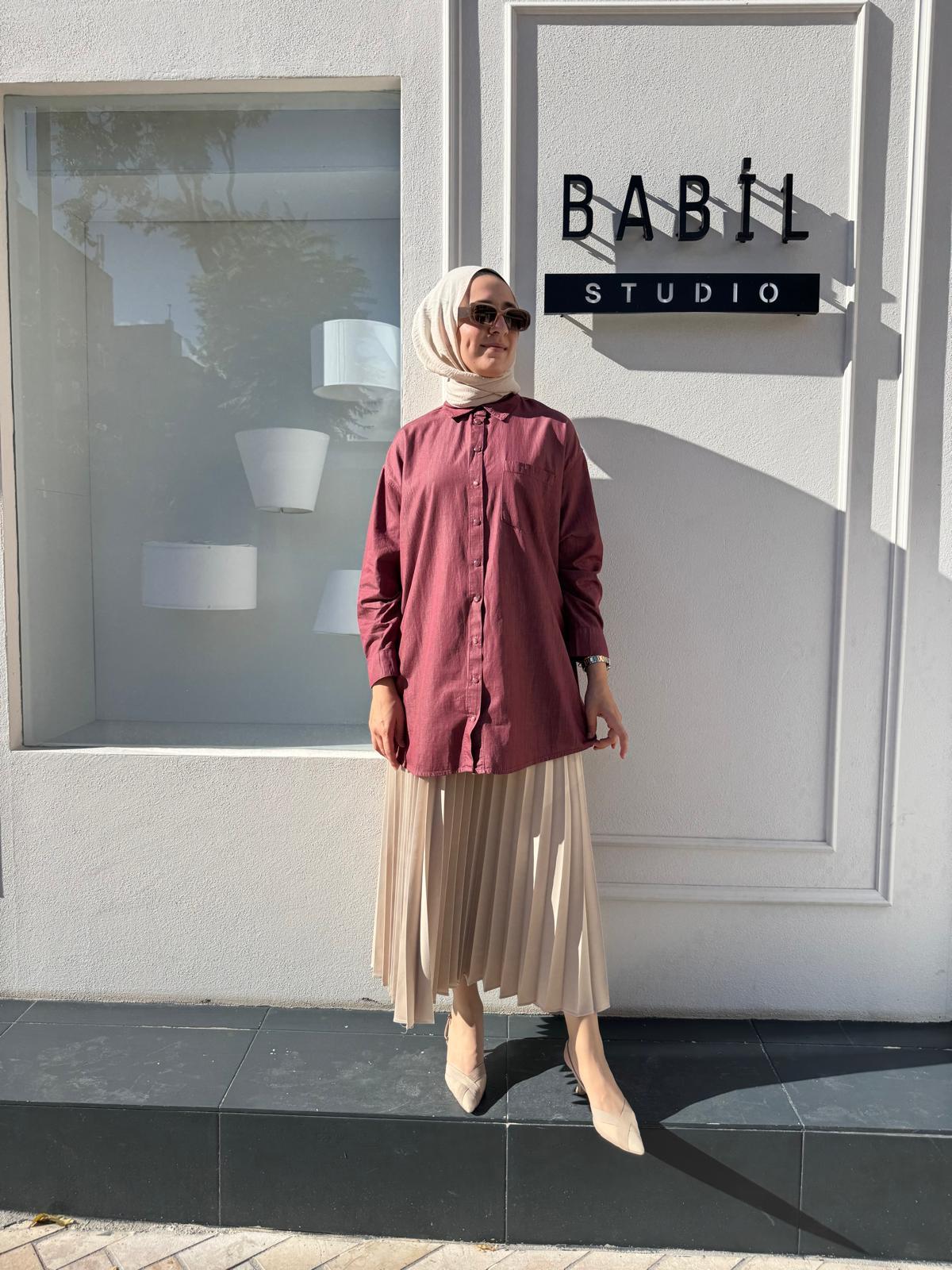 7163 Cep Detaylı Kadın Gömlek Bordo (7163)