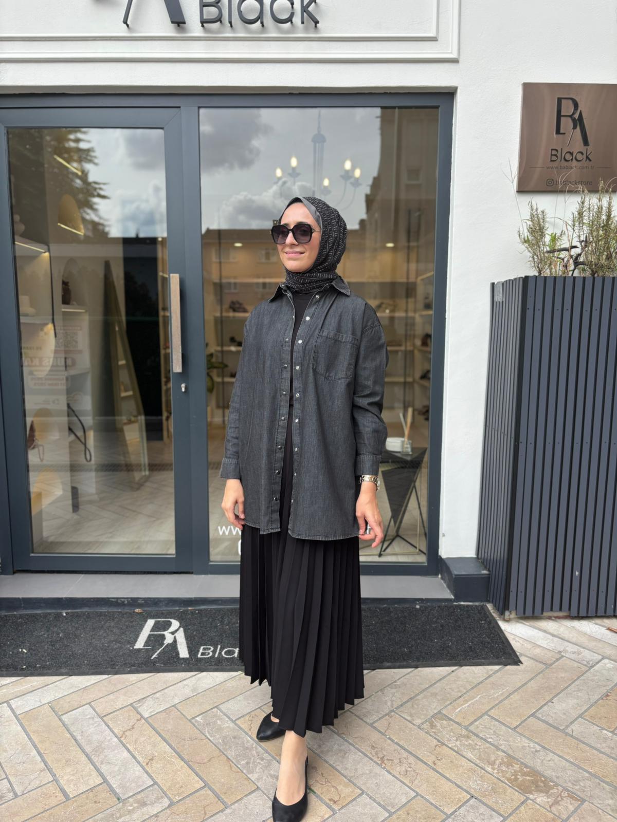 7163 Cep Detaylı Kadın Gömlek Siyah (7163)