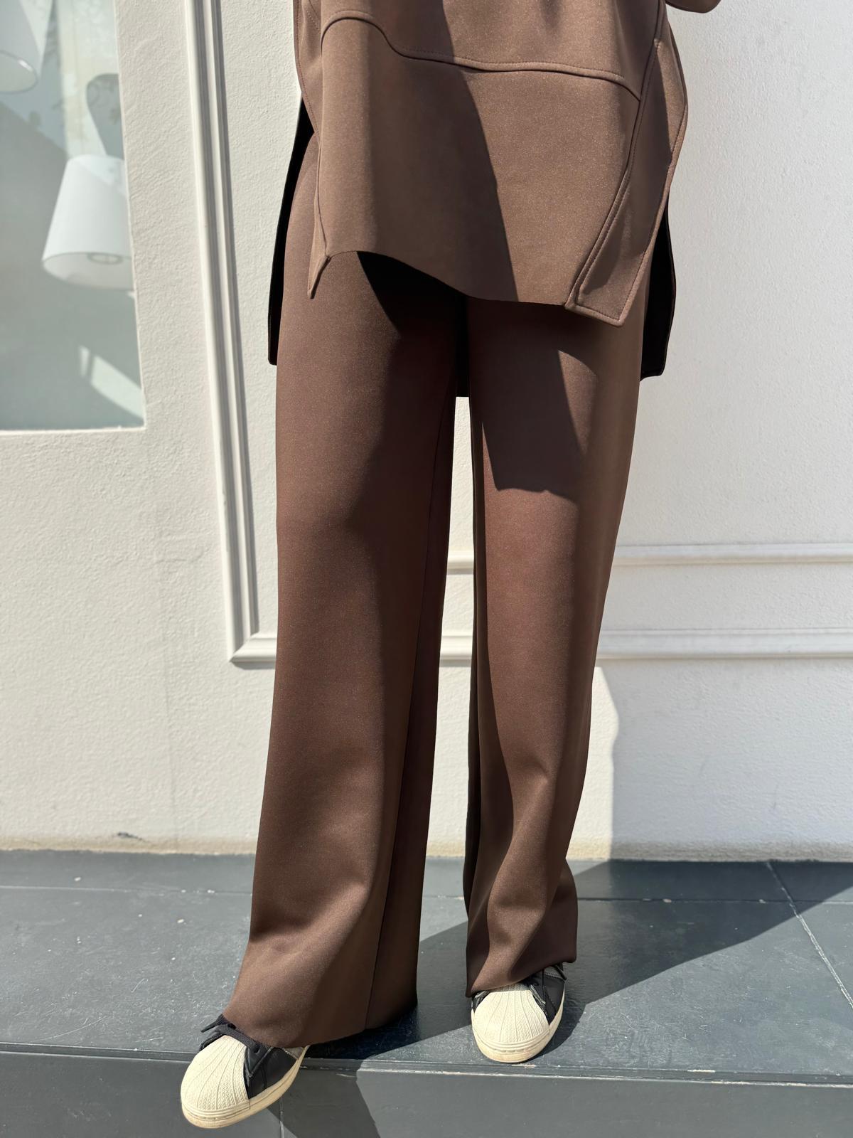 Asel Scuba Kadın Bol Pantolon Koyu Kahve (TD2324)