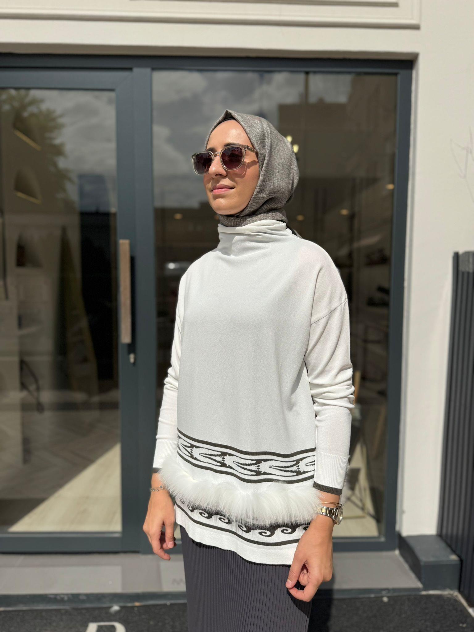 MİSS 264 Tüy Detay Kadın Tunik Beyaz (MİSS 264)