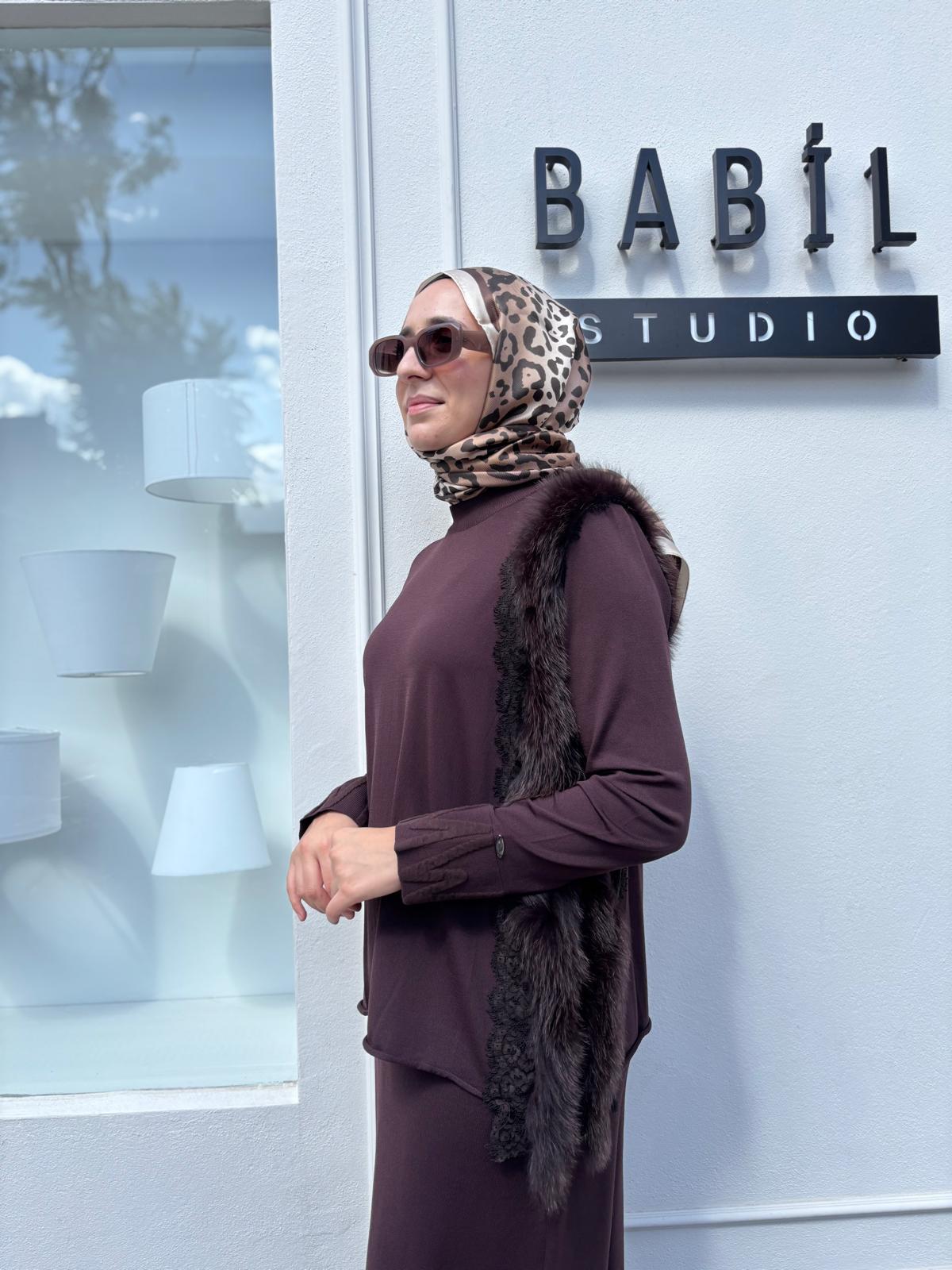 MİSS 268 Tüy Detaylı Kadın Tunik Kahve (MİSS 268)