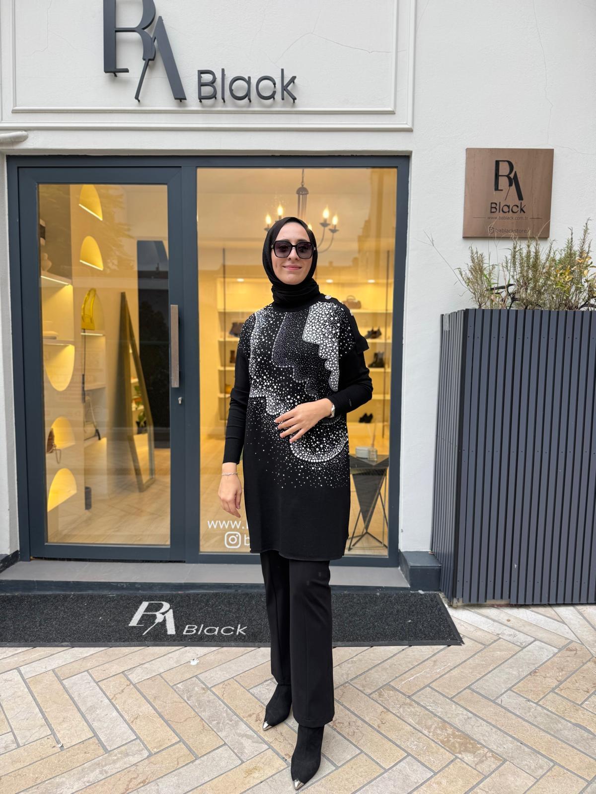 MİSS 271 Desenli Kadın Tunik Siyah (MİSS 271)