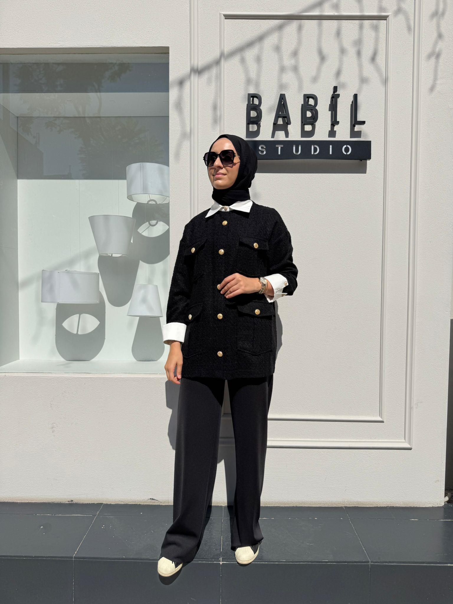 Moon Gömlek Detaylı Tüvit Ceket Siyah