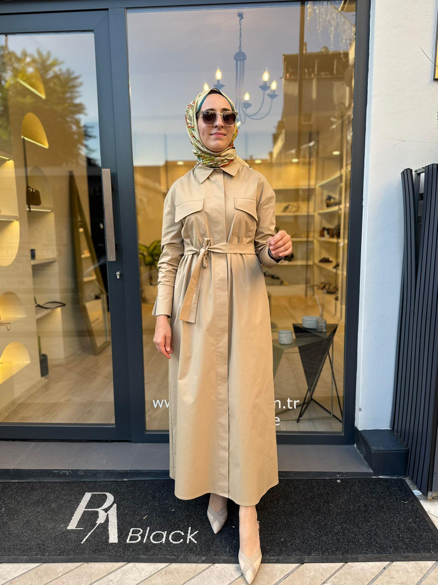 TD4516 Nefil Kadın Elbise Camel