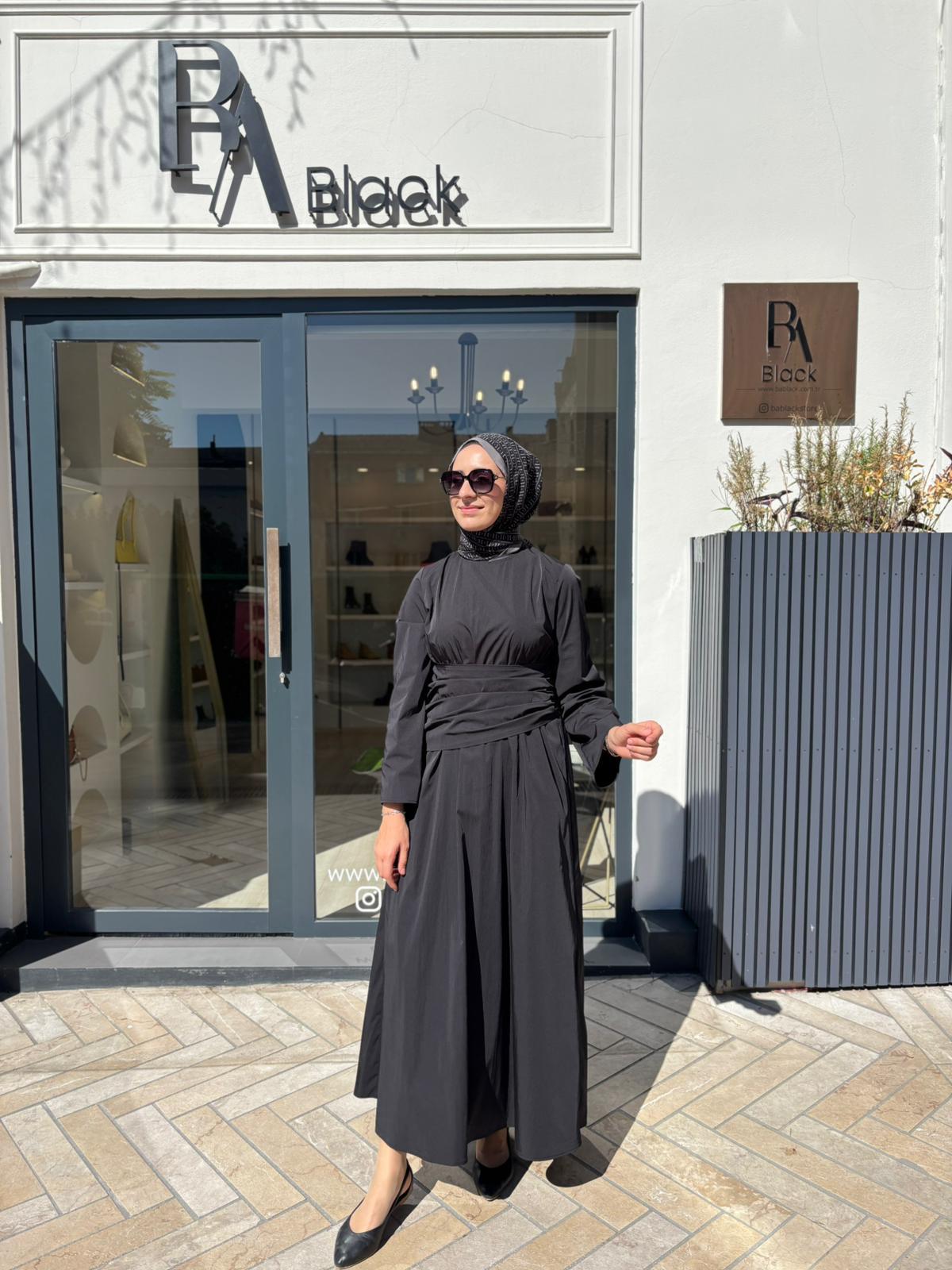 TD4523 Rose Büzgülü Kadın Elbise Siyah