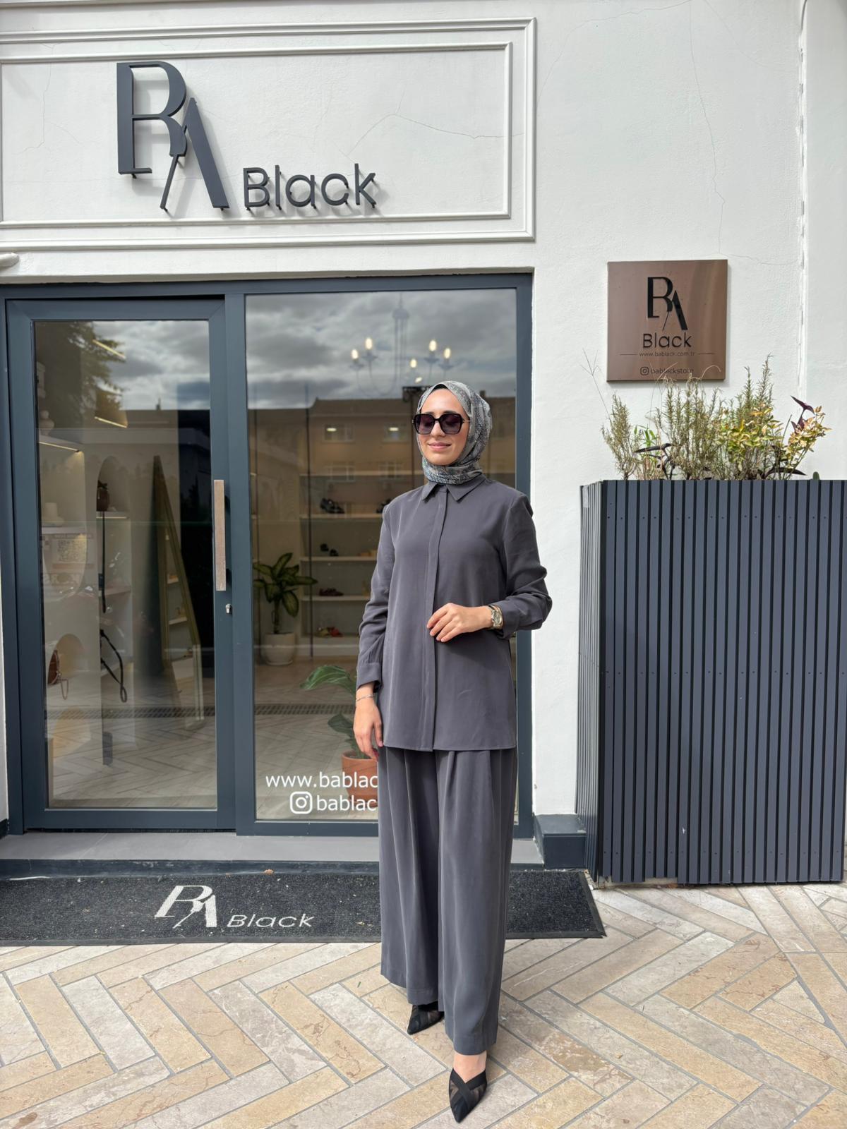 TD4620 Nimes Gömlek Yaka Kadın Takım Antrasit