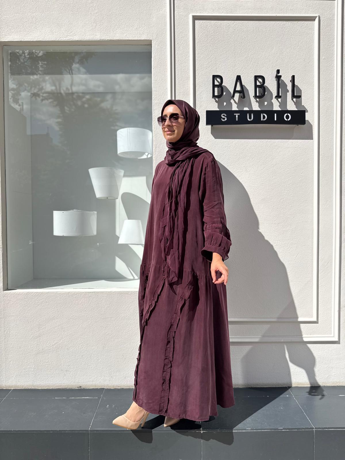 V3225 Dikiş Detaylı Fularlı Kadın Elbise Bordo